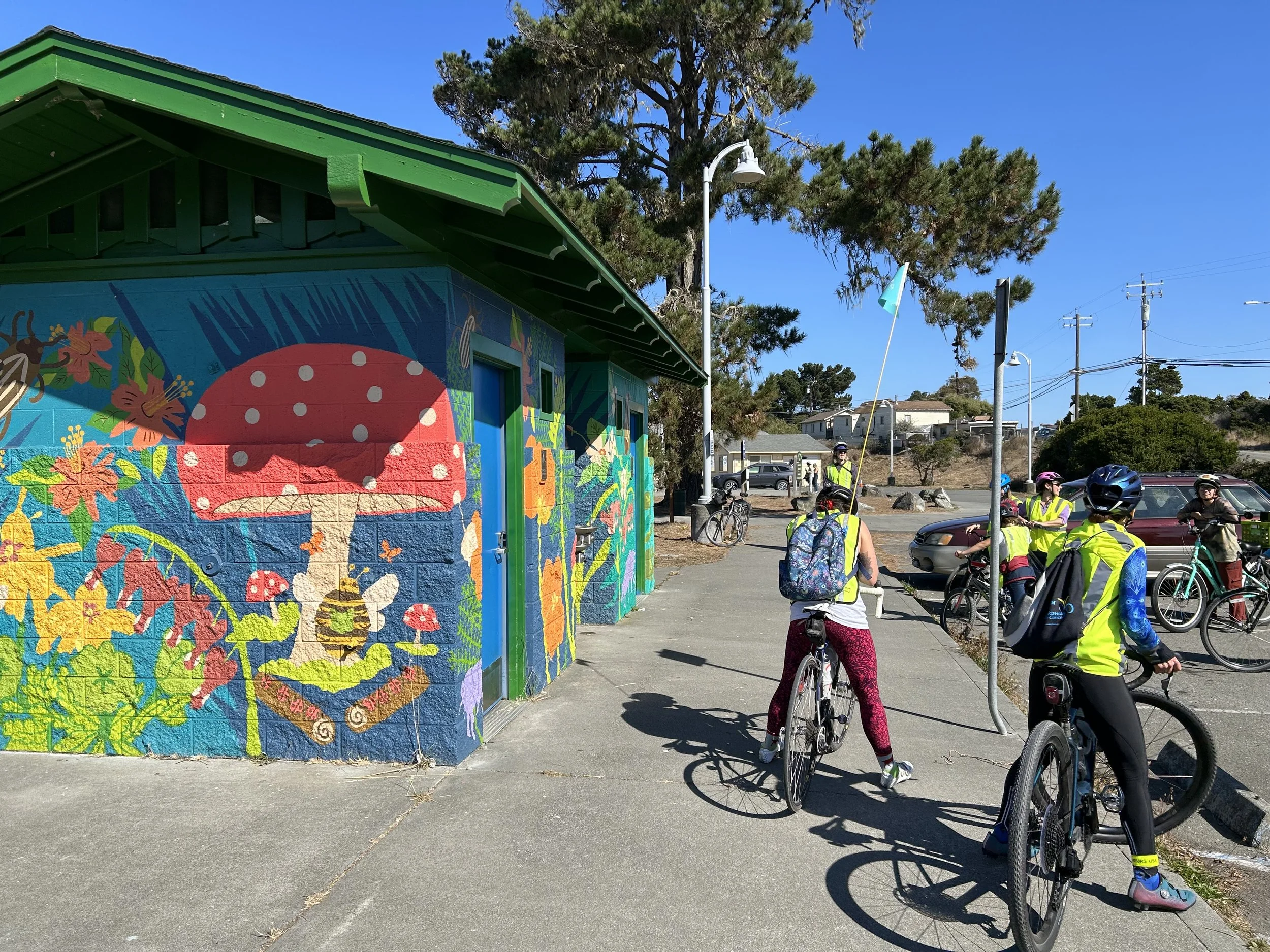Through Caltrans Clean California Grant, the PCC supported Redwood Community Action Agency's work to beautify the peninsula by installing 23 murals. Pictured here is a mural at the Manila Community Center during a mural bike tour.