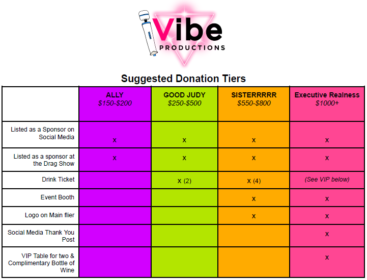 Sponsor Vibe Productions’ Queer Bazaar & Drag Show